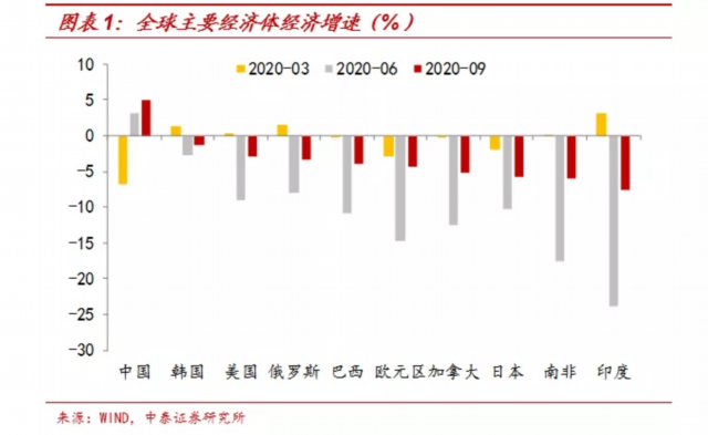 会议指出,“我国成为全球唯一实现经济正增长的主要经济体,三大攻坚战取得决定性成就”,这是对我国今年防疫和经济工作的肯定。我国最早受到新冠疫情冲击,由于疫情防控封锁,经济活动趋于停滞,1季度GDP增速仅为-6.8%,在主要经济体中最低。但也得益于有效的防控隔离措施,疫情快速得到控制,复产复工得以迅速推进,我国经济也随之持续修复,三季度增速已经达到4.9%,在主要经济体中唯一实现正增长。