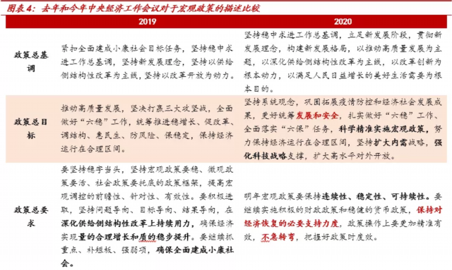 去年和今年两次会议都强调了“提质增效”,不过在财政支出结构上,今年会议做了进一步的细化,比如“增强国家重大战略任务财力保障”,“在促进科技创新、加快经济结构调整、调节收入分配上主动作为”。反映未来财政资金在科技、新经济领域的支持力度继续增大,新基建仍会保持一定的高增长,不过考虑到新基建目前规模仍远小于传统基建,对经济的支撑力度是有限的。另一方面,会议提及在收入分配上主动作为,后续可能会推出一些税制上的改革,在社会保障领域的支出力度也可能会有所增加。