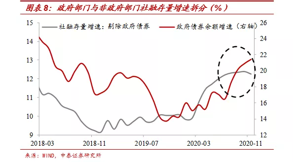 其实今年下半年来信用的投放其实也已经在收敛了。比如6月份以来银行信贷已经回归到正常增长通道,社融的短期高增长主要来自政府债券的大量发行,剔除政府债券后的社融增速也已经放缓了。