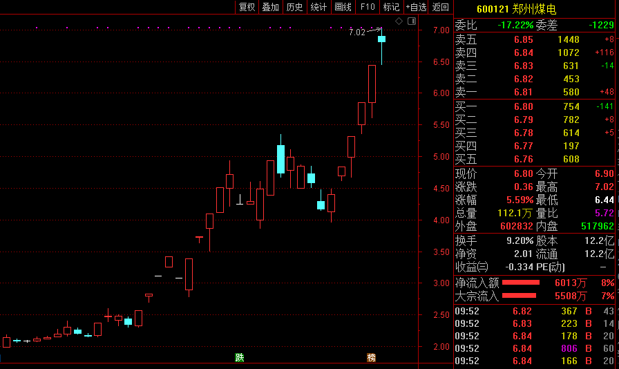 周四早盘,郑州煤电延续强势大涨逾5%,盘中最高至7.02元,创出近5年新高。