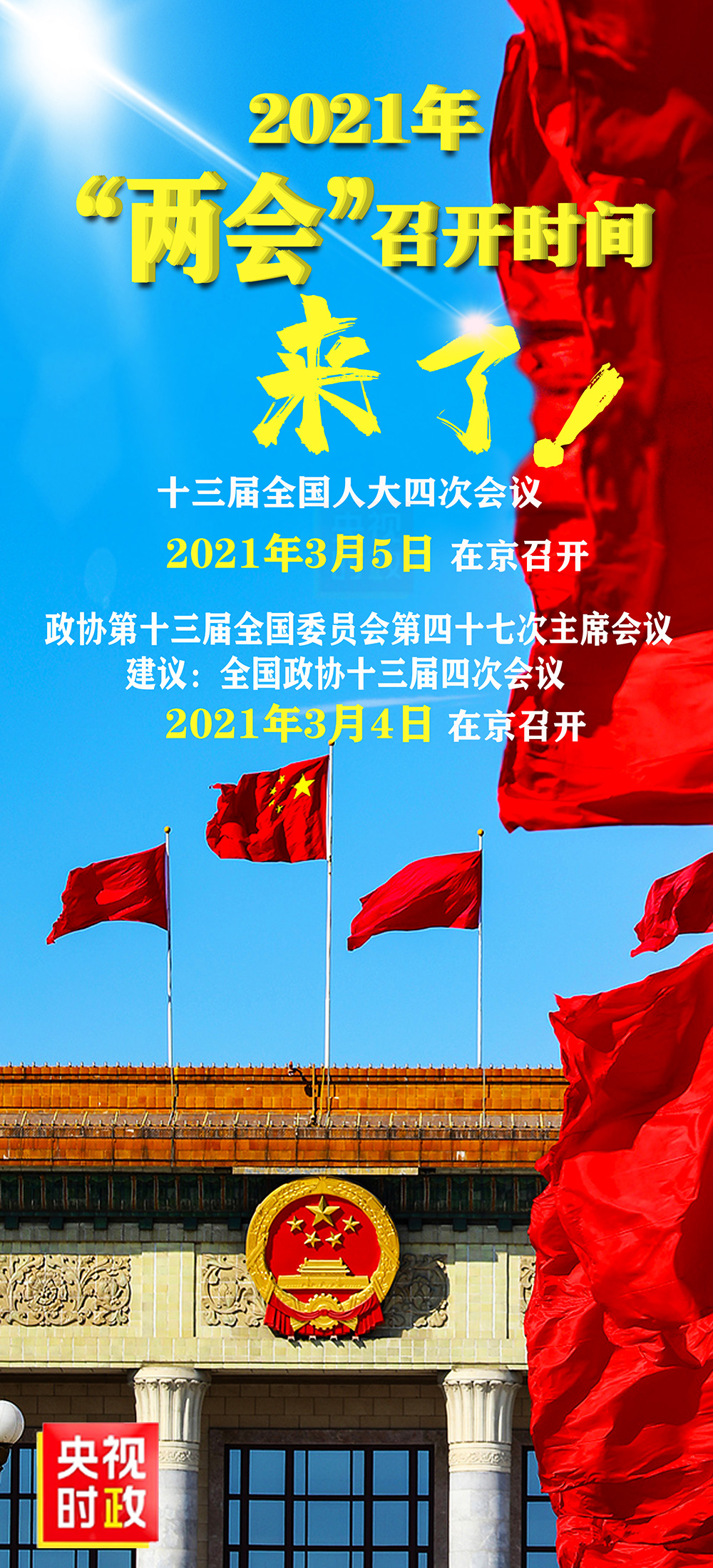 今天下午,十三届全国人大常委会第二十四次会议,通过了关于召开第十三届全国人民代表大会第四次会议的决定,决定明确:十三届全国人大四次会议将于明年3月5日在北京召开。