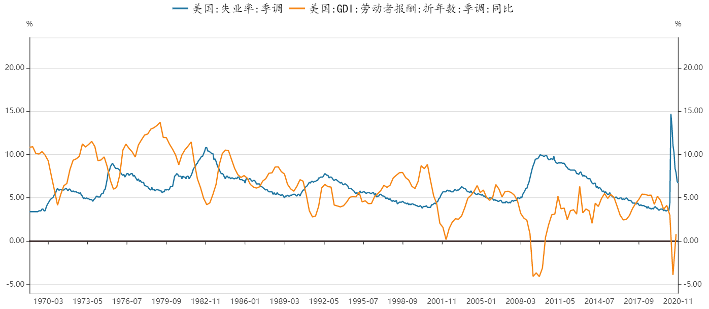 全球为缓解疫情影响而采取的货币宽松政策,在中期必然推高通胀预期,当然全面通胀回升,还要依赖于充分就业后劳动力收入上涨——上世纪80年代初美国高通胀跟较高的劳动者报酬以及回落的失业率有关。