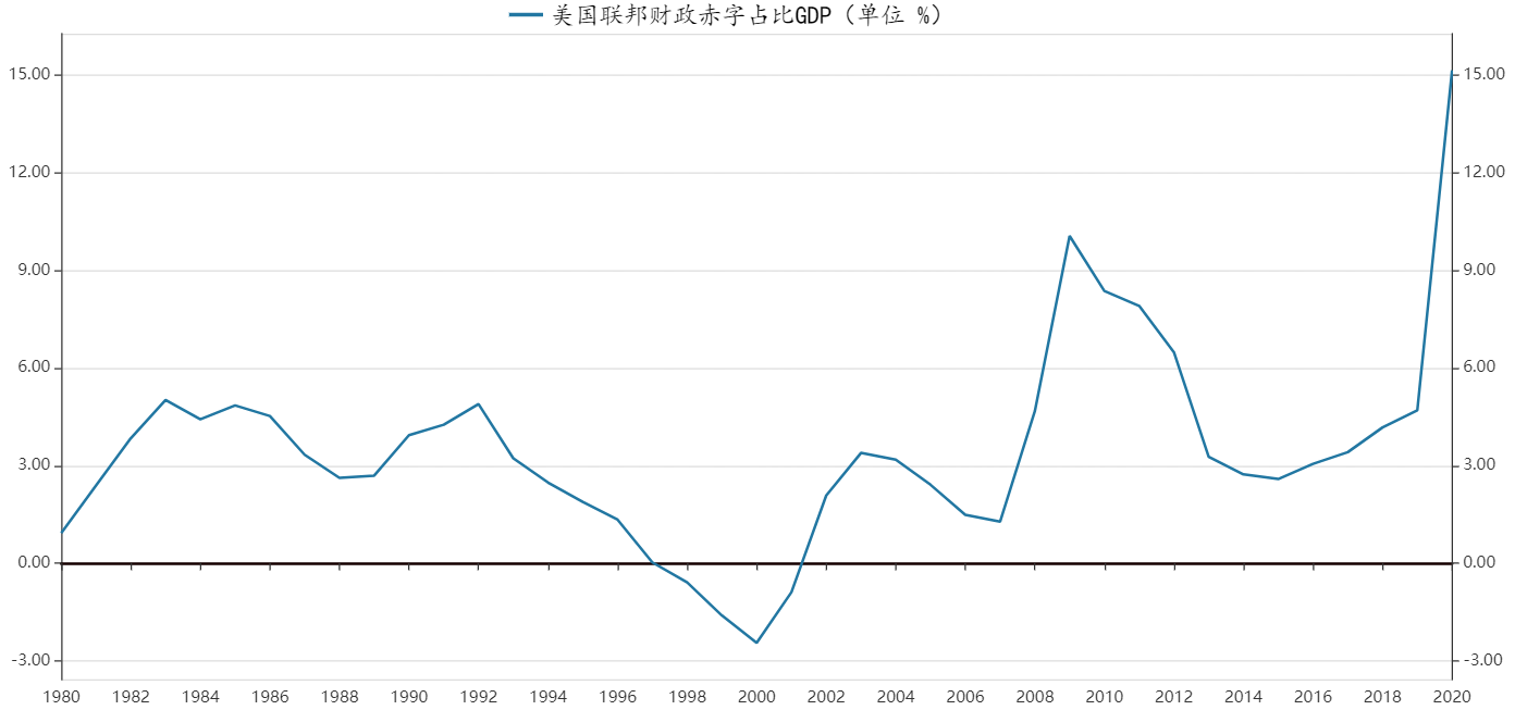 图:截至11月美国联邦财政赤字占比GDP超15%