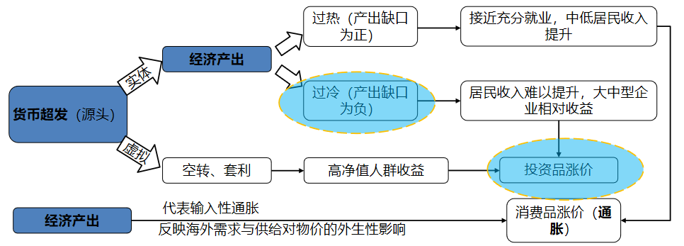 影响通胀的因素主要包括货币供应、充分就业(菲利普斯曲线)以及劳动生产力,这三者共同影响了商品与服务价格。根据费雪方程式:M*V=P*Q,商品价格取决于基础货币供应、货币流动速度以及商品产量。从当前全球央行维持货币宽松预期来看,以及收入和利率的抬升将推高货币流动速度(货币流通速度是实际收入与实际货币余额的比率,同时,货币需求的利率弹性是负数,因而利率上升会提高货币流通速度),而逆全球化与技术革命的放缓将可能导致商品产量增产不及预期,最终导致商品通胀以及充分就业后全面通胀上行。