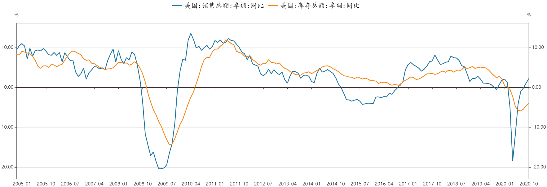 最后看需求侧,制造业补库存叠加基建预期,将拉动工业品价格回升。需求侧管理除了传统货币政策之外,还取决于政府支出与贫富分化,后两者将推动政府、企业与居民部门需求。2021年拜登上台后,如推进其承诺开启2万亿美元的基建,将推高美国国内需求;同时,拜登耶轮组合将实施更多财政政策弥补美国分裂,降低贫富差距,将推动全面需求复苏与通胀;美国疫情后消费的复苏,以及当前正处于补库阶段,推继续推高美国经济需求,推高通胀。