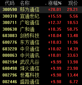 12月29日,5G板块逆市掀起涨停潮,移为通信、中兴通讯、宜通世纪、东方通信等十余股涨停。