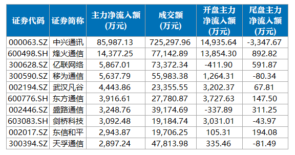 据Wind数据统计,近3日,通信设备获主力资金大幅净流入,居两市首位,合计净流入金额达7.6亿元。从个股情况来看,中兴通讯3日合计获主力净流入8.6亿元,烽火通信获主力净流入1.44亿元。