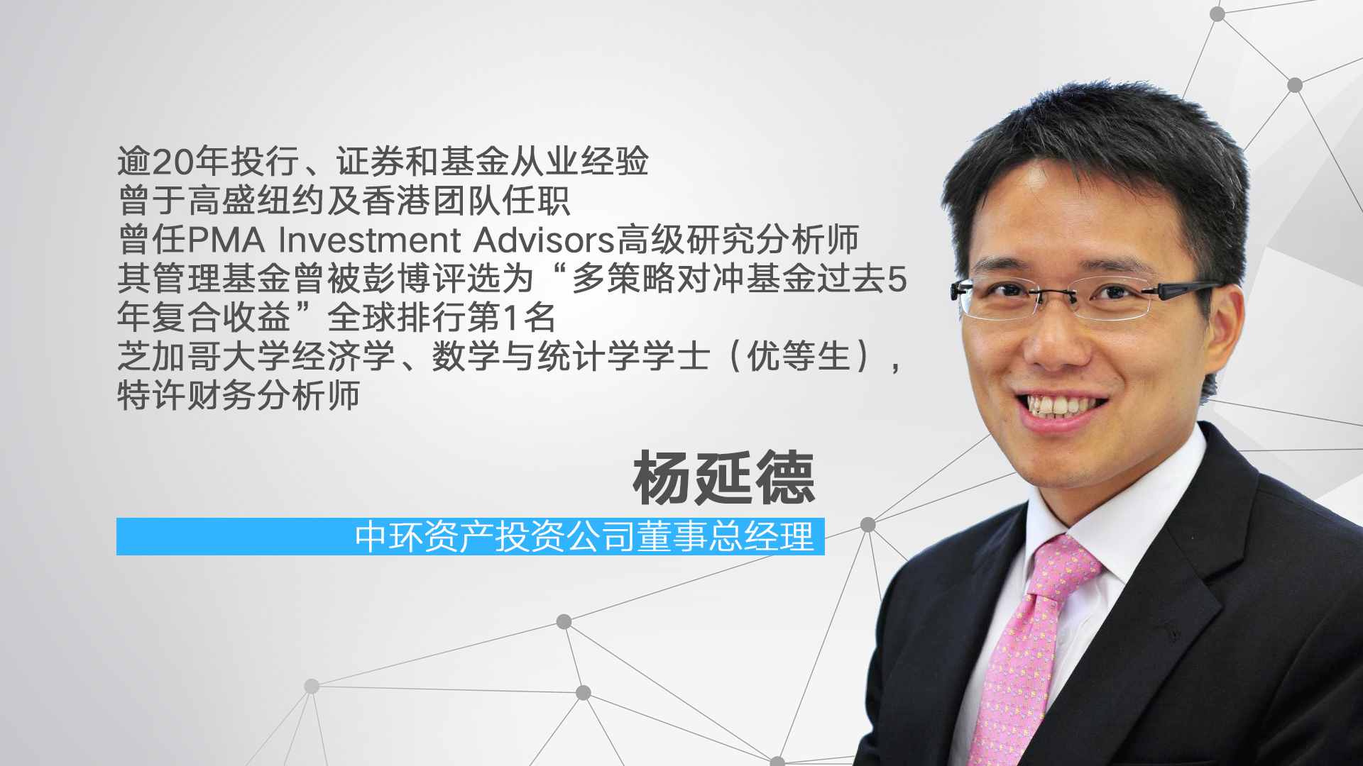 杨延德:如果你说2021年(恒生)指数的话,我觉得其实在外围没有大幅的改变,比如说一些不可预测的事情,我觉得可能双位数字的涨幅其实应该是挺大概率的事情的。