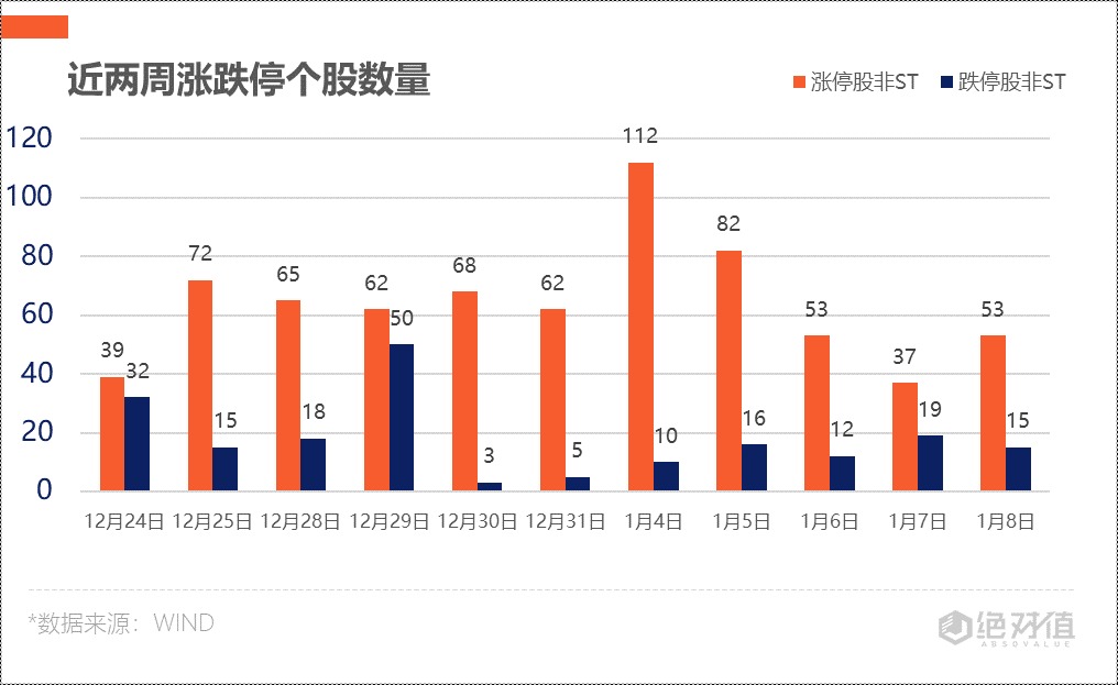 三大指数虽震荡走低,但上涨个股数量却反而提升:两市共计2025家上涨,1977家下跌。涨停53家,跌停15家(不包含ST),涨停个股数量止跌。