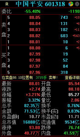 1月15日,中国平安高开高走,截至发稿,涨逾3%,报88.01元,市值16088亿元。