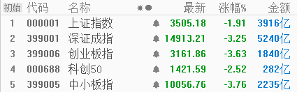 1月28日,隔夜美股大跌,今日A股也跟上了美股的步伐,三大股指集体下挫,上证指数盘中跌破3500点,股指具体表现见下: