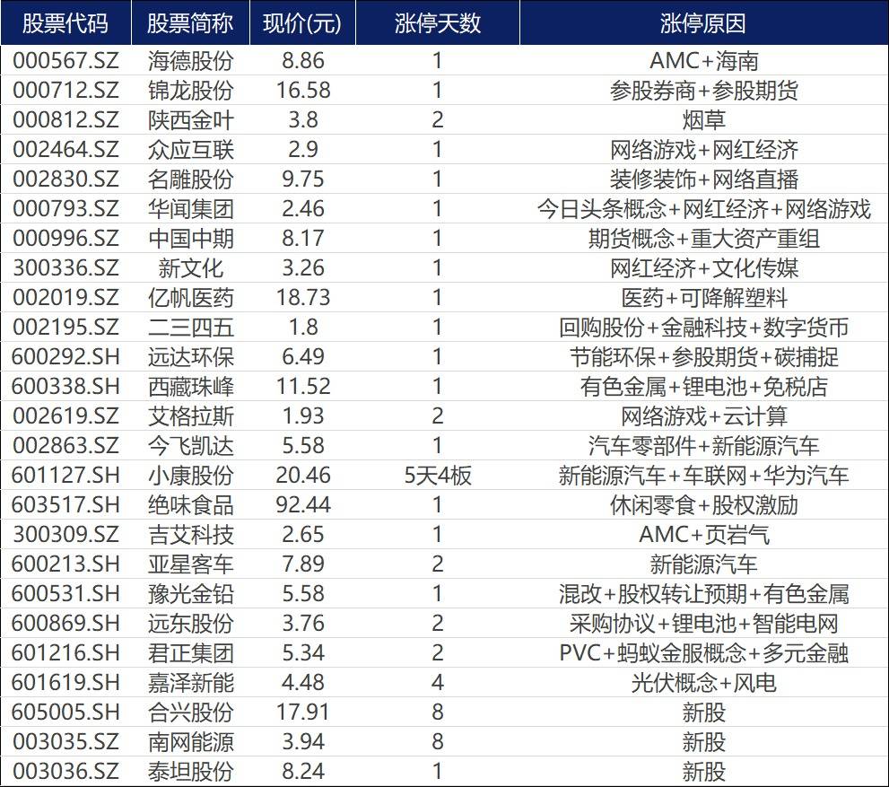 期货概念股今日多股涨停,包括锦龙股份(000712.SZ)、中国中期(000996.SZ)、远达环保(600292.SH)。