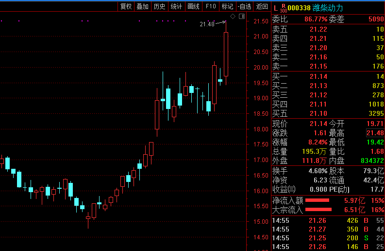 周五,潍柴动力再度大涨逾8%,股价创出历史新高,全天成交40亿元,年内涨幅已达33.88%。