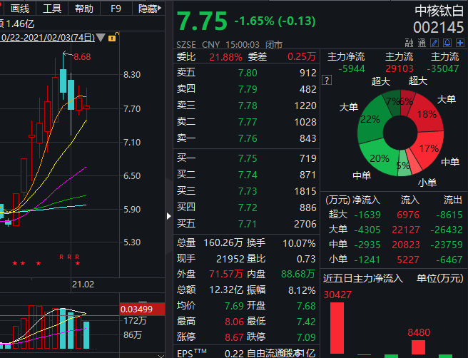 二级市场上,中核钛白近期涨势明显,10个交易日内累计大涨近38%。