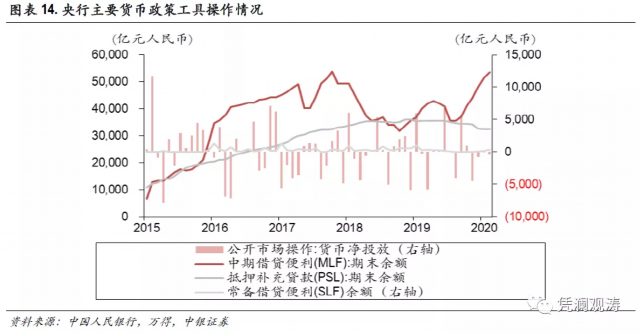 2015年“8.11”汇改,人民币汇率意外贬值。自此,央行外汇占款连年下跌(实际上2014年下半年就开始了)。央行转而通过MLF、SLF、PSL等工具,对冲外汇占款减少的影响。2018年起,随着人民币汇率由单边下跌转为双向波动,央行更是通过降准进一步释放中长期流动性。