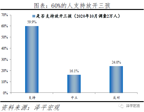 根据2020年10月调查,有60%的人支持放开三孩,16%的人中立,24%的人反对。从现实看,不生孩子的情况主要包括单身主义、不孕不育、同性恋、丁克家庭等。在婚姻方面,2013-2019年中国结婚对数从1346.9万对持续降至927.3万对、降幅31.2%,离婚对数从350.0万对升至470.1万对、增幅34.3%,离结比(离婚对数/结婚对数)从26.0%升至50.7%。