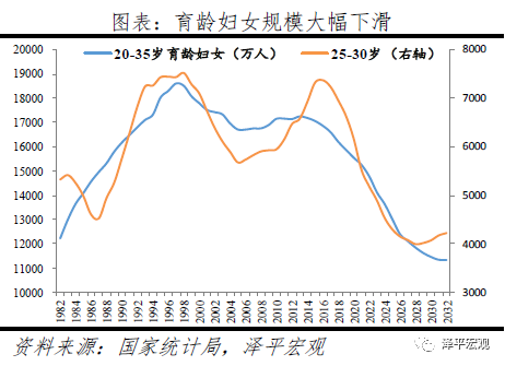 主力育龄妇女规模持续缩减是出生人口持续下滑的重要原因,出生人口1992年后下降趋缓,带动主力育龄妇女和出生人口也将在2028年前后下降趋缓。
