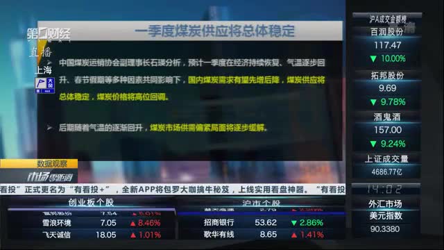 煤炭概念中,大有能源涨停,晋控煤业、中煤能源此前封板,山西焦煤、安源煤业、兖州煤业、郑州煤电等都大涨逾5%。分析认为,煤炭板块估值于历史底部刚刚开始启动,结合煤企业绩上升,公司估值有望进一步回升。