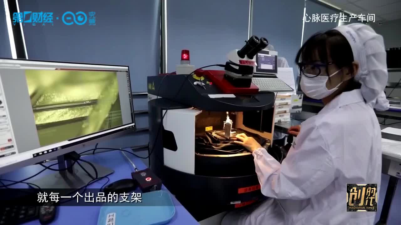 在心脉医疗的生产车间,《创时代》记录了生产的多个步骤。一根镍钛丝,经过反复的定型、热处理、抛光、焊接、清洗、手工缝制等一系列神奇的旅程,最终成为一根可植入人体内的支架。这一整套过程下来,不仅需要前沿的开发设计能力,还需要整个生产的缜密化和精细化。