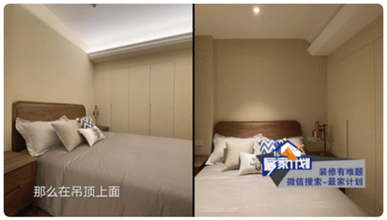 卧室上方,也换成圆弧吊顶,最大程度降低噪音。