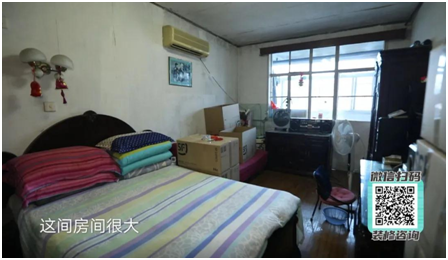 主卧空间过大,但是放眼望去只有一处储物柜,空间布局非常不合理;整体陈设还保留着上世纪的风格。