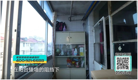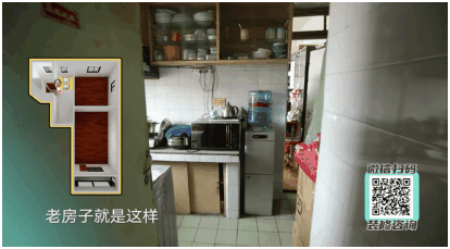 “开门见厨”几乎是上世纪80年代老房子的常见格局。在这方寸之地还塞下了破旧不堪的橱柜,体积庞大的洗衣机,导致通行空间格外局促。