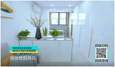 在客厅与主卧之间采用隔断柜来进行空间过渡,并且之后可以再次安装门帘来进行更为私密的空间划分。
