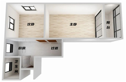 与厨房正对的走道被各类纸箱堆积,造成空间的严重浪费;向左转便是主、次卧,空间之间毫无过渡可言。