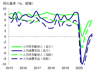 消费有望成为拉动今年中国经济增长反弹的主要动力。基于本次调查结果和宏观层面的分析,我们依然预计今年实际消费增速将在去年的低基数上大幅反弹至10%。在目前的出行限制解除之后,迄今恢复相对滞后的服务业(如交通、外出旅游、线下娱乐等)也有望更强反弹。值得注意的是,尽管中国居民资产负债表和财务状况大体良好,但偿债负担较高的三四线城市和中低收入群体的债务风险可能较高。此外,网贷监管收紧可能会抑制依赖此类借贷来维持消费、或将之作为主要偿债手段的人群的消费。