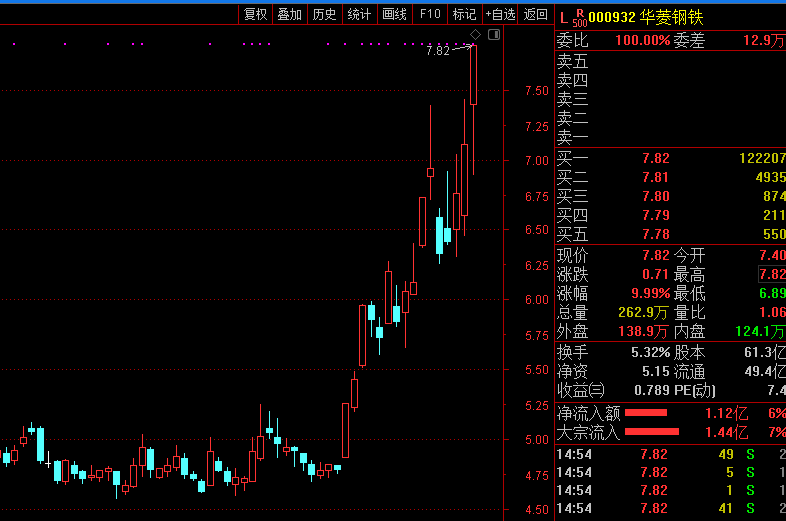 周四,华菱钢铁放量涨停。截至收盘报7.82元,创出自2008年以来新高。全天成交金额接近20亿元,近三个交易日累计涨幅超过20%。