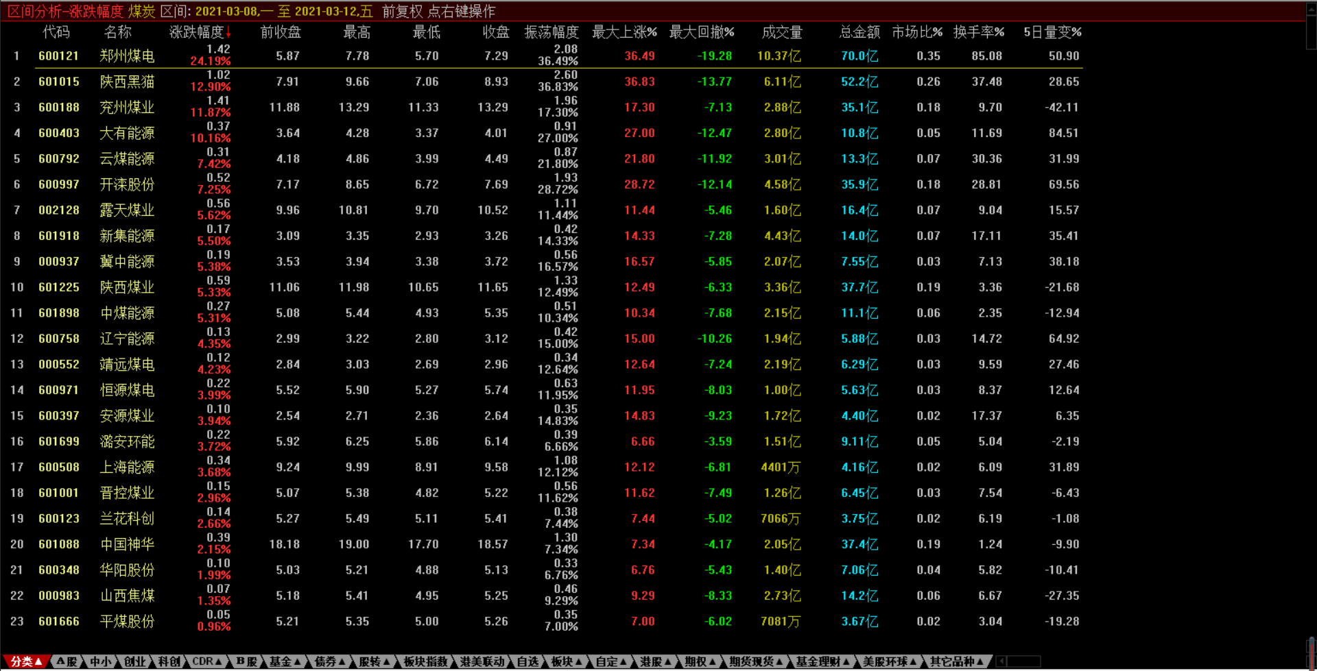 受下游需求恢复和库存去化支撑动煤价格企稳消息影响,本周A股煤炭板块再度拉升。