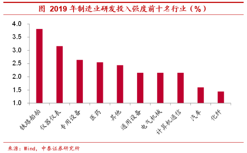高研发强度制造业前景更佳。无论是在十四五规划纲要还是今年的政府工作报告中,都更加强调经济增长的质量,特别是对于创新活动尤为重视,如政府工作报告指出,将制造业企业的研发费用加计扣除比例提高到100%。这也意味着,研发能力较强的制造业企业将迎来更好的发展前景,装备制造、医药等领域或将因此受益。