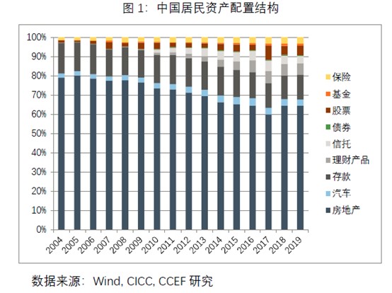 房地产在中国居民资产中价值占比较高的主要原因:首先,过去15年中国的城镇化率快速提高,加上长期流动性过剩,大量超发货币流入土地市场,从而推高房价;其次,资本跨境流动的管制和金融市场不够成熟也是导致中国居民的资产配置过度依赖不动产的原因。