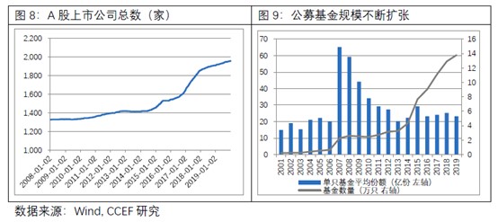 其次,随着中国资本市场制度改革开放提速,资本双向流动更加方便快捷,投资工具和产品日益丰富,2010年以来,包括量化私募在内的多类私募产品、公募FOF及MOM、REITs等财富管理产品相继推出;公募产品数量激增,基金投资渠道也趋于分散和多元化。在市场规模方面,自2015年以来,A股上市公司总数5年内翻1.3倍,市场容量大为扩张。