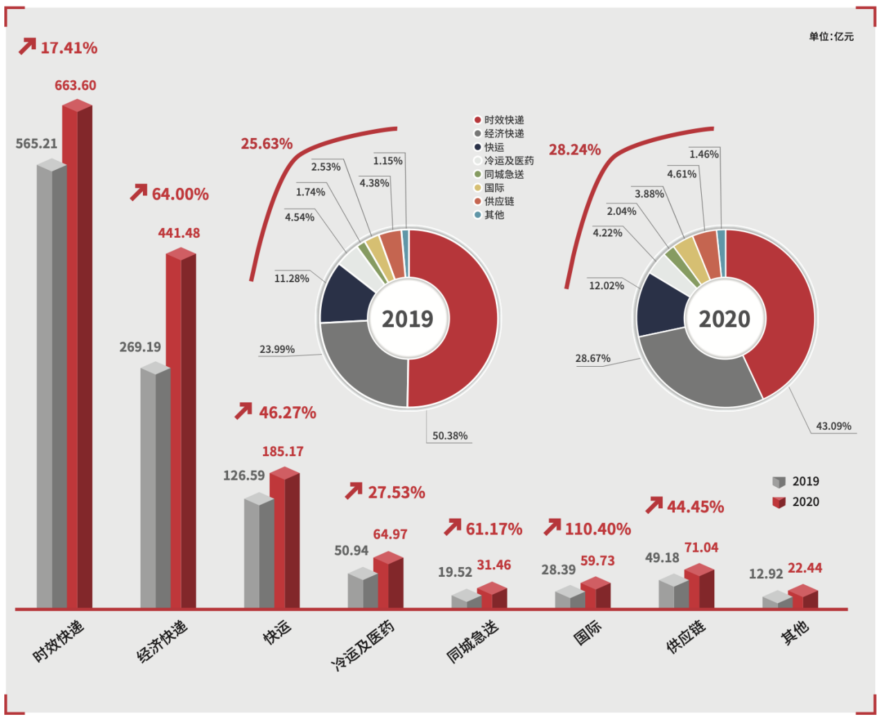2020年年报显示,顺丰快运、冷运及医药、同城、国际等新业务板块,继续保持高速增长,占总营业收入比例进一步提升至28.24%,同比提升2.61个百分点,成为公司业务新的增长引擎,公司综合物流服务能力及供应链服务能力进一步增强。