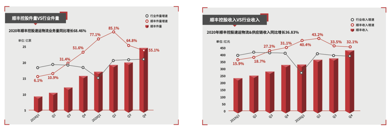 2020年,顺丰用实力证明了其运营模式对资源的掌控力度、前瞻性资源布局的领先性、多元化业务结构的抗风险能力,以及对消费升级带来的市场需求多样化的快速适应能力。