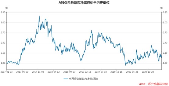 虽经过一波上涨,当前保险板块估值仍处于历史低位。如果基本面能够持续改善,三五年内仍有较大投资价值。