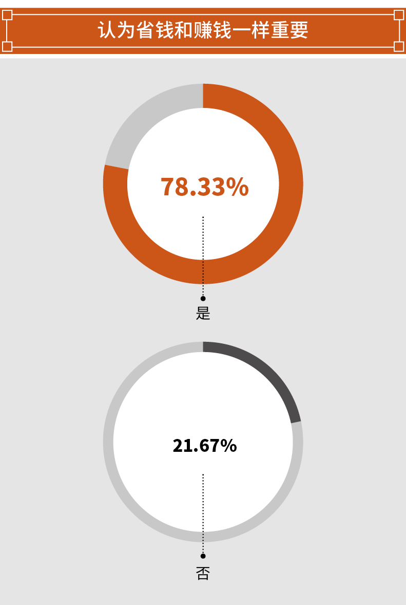 78.33%的女性认为省钱和赚钱一样重要, 她们不太愿意接受超出能力的透支消费,量入为出,信用卡消费态度更注重高性价比与实用性。