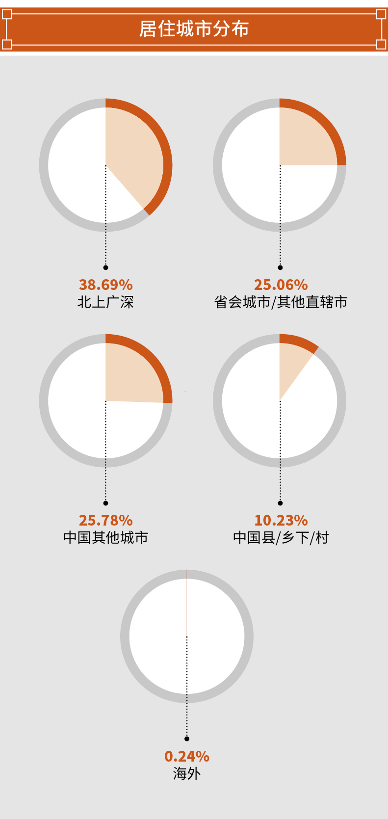 本次调查回收有效问卷数5454人次。受访者来自中国各地,89.53%来自于城市,38.69%来自北上广深一线城市,女性占比81.17%,近六成受访者年龄在39岁以下。