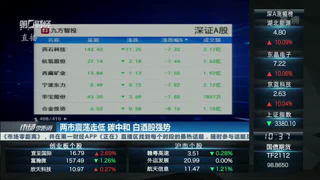 指数低开震荡,题材表现活跃,上涨个股较开盘大幅回升,碳中和高标继续分化,不过资金承接力超预期,节能风电缩量反包,碳捕捉、森林碳汇等分支继续发酵,智能制造、券商等题材有所表现。情绪指标上,短线人气开盘快速回落,一度陷入低迷区,此后快速回升,现位于低迷区上方。