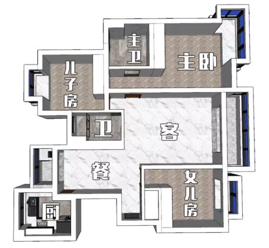 户型:3房2厅1厨2卫