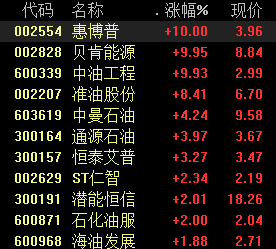 周一午后,油服板块不断走强,截至收盘,惠博普、贝肯能源、中油工程涨停,准油股份大涨8%,中曼石油、通源石油等纷纷跟涨。