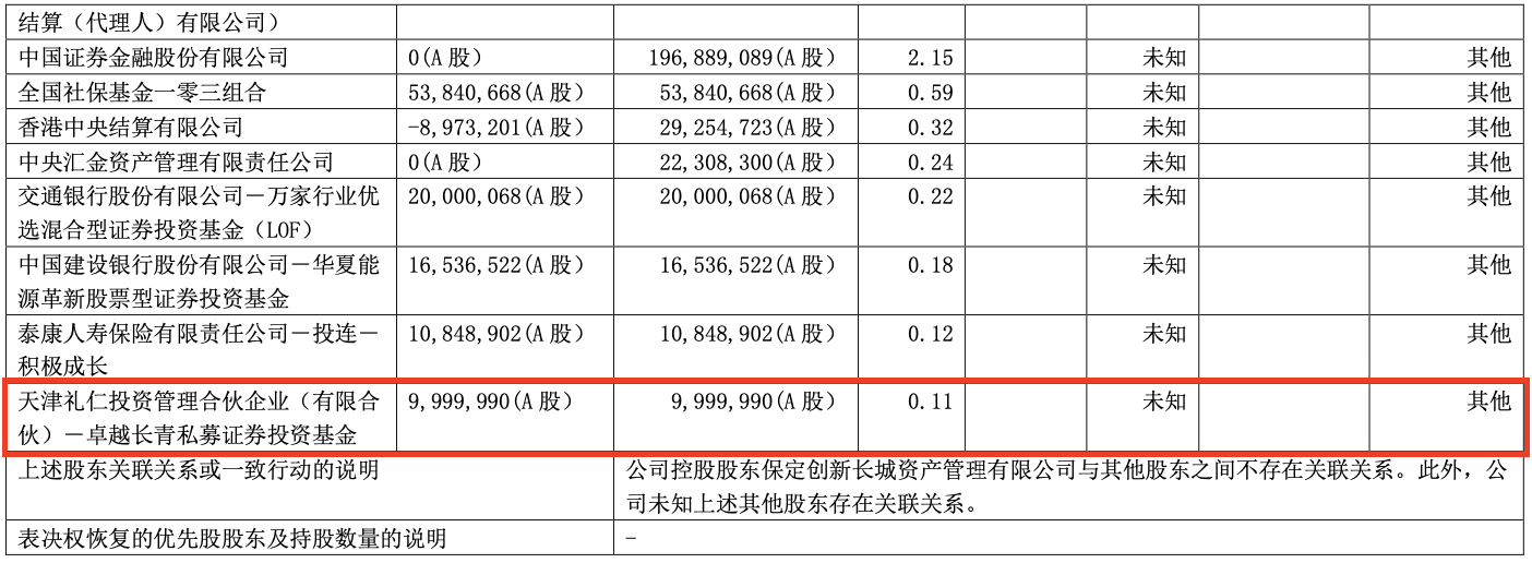 此外,高瓴礼仁现身长城汽车前十股东。年报显示,天津礼仁投资管理合伙企业(有限合伙)-卓越长青私募证券投资基金持股1000万股,持股比例0.11%,按最新股价29.69元计算,其持股市值近3亿元。公开资料显示,天津礼仁投资管理合伙企业为高瓴资本下属机构。