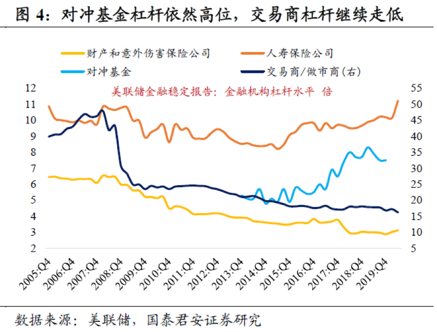 部分观点认为此次事件可能演变成类似雷曼兄弟或长期资本倒闭冲击,但事实上后金融危机时代美国银行业在监管升级的背景下资本充足率和流动性覆盖率大幅提高,也经受住了2020年3月美股暴跌和机构踩踏的冲击。严监管也极大提高交易商的资产负债表成本,从2009年到2019年末,美国广义基金(共同基金、ETF、货币基金、REITs和封闭式基金)的资产规模累计增加14.5万亿美元,但交易商则几乎未变。根据美联储11月金融稳定报告,美国对冲基金杠杆水平依然处于过去五年的高位,而交易商杠杆则持续走低。我们认为此次“爆仓”事件演变成美国银行业系统性风险的可能性并不大,但大量恐慌抛售带来的流动性冲击,短期内可能仍将持续并使大类资产承压。