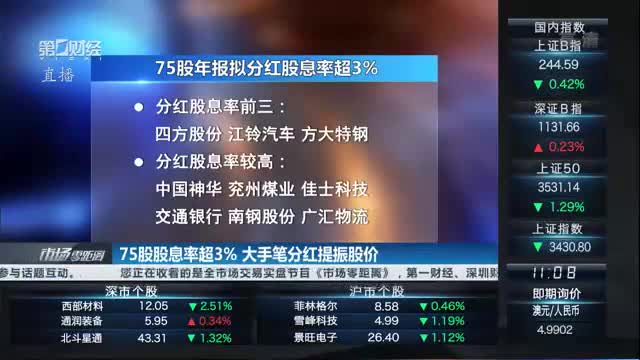 数据统计,逾600股在年报中提出分红派现预案,合计拟派现总金额超6600亿元。15股拟派现金额超过百亿元,分别是工商银行、建设银行、中国神华、招商银行、中国平安等,工商银行派现总金额948亿元稳居榜首位置。从股息率角度来看,以昨日收盘价计算,2020年报拟分红公司股息率超3%的有75只股票,四方股份、江铃汽车、方大特钢股息率位居前三位。股息率较高的还有中国神华、兖州煤业、佳士科技、交通银行、南钢股份、广汇物流等。二级市场的表现也体现了资金对高股息率公司的青睐,数据显示,3月以来股息率超5%的股票平均涨幅达到11.5%,股息率4%至5%之间的股票平均涨幅为5.66%,股息率3%至4%之间的股票平均涨幅为1.68%。