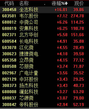 受此影响,中芯国际概念也同步拉升,截至发稿,金志科技、中微公司、安集科技等多股均不同程度上涨。