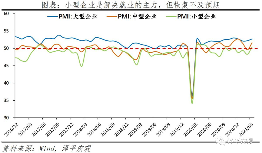4、就业数据反弹但形势仍严峻,大中小型企业景气度差距较大。