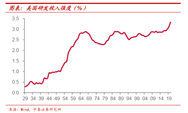 加强自主创新,保持竞争优势。对于制造业投资部分,拜登计划特别强调企业自主创新能力的培育。一方面,专门拿出计划资金的约8%用于创新技术方面的投资;另一方面,拜登在计划中也提到要加强关键产品的供应能力,着重指出投资500亿美元用于半导体行业的研发。2018年以来,美国研发支出投入强度再度突破3%,2020年更是超过3.3%,在此基础上,拜登旨在通过加大研发支出规模保持住美国的竞争力优势。