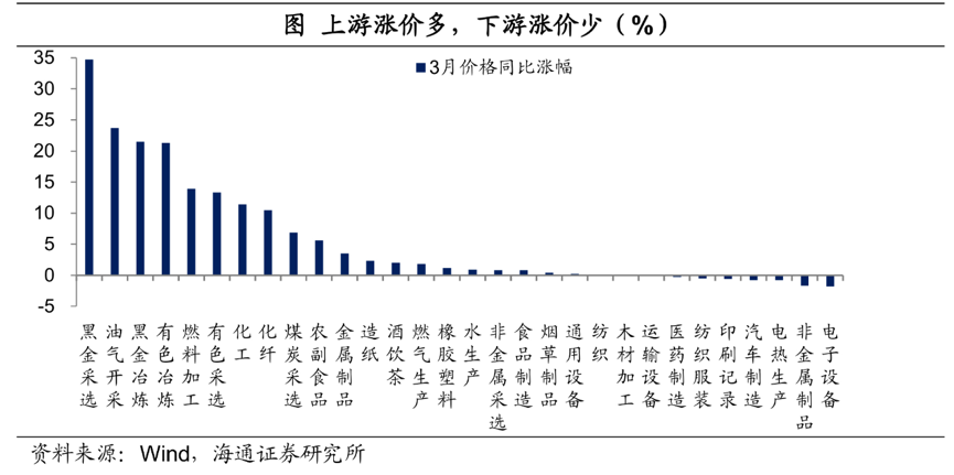 但是如果仔细拆分3月PPI的涨价结构,其实和前几个月是类似的,即PPI的回升主要是大宗商品涨价带动的,生产资料价格同比飙升到了5.8%,而生活资料价格同比仅仅转正至0.1%。