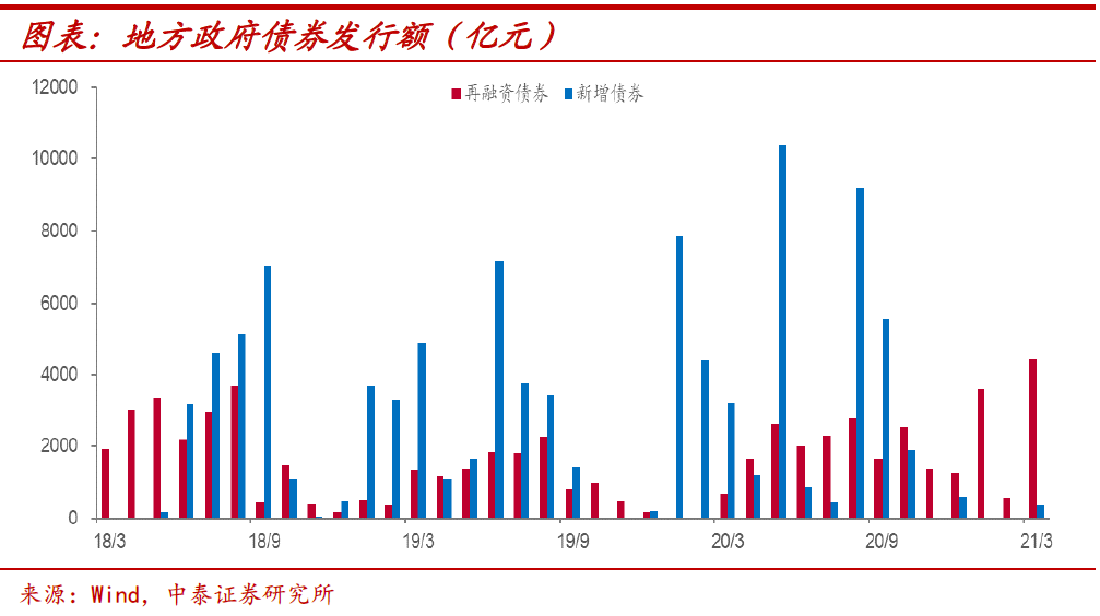 全年或将不温不火。从2018年以来,基建投资增速持续低迷,2020年在广义财政赤字率创新高的背景下,基建投资依然表现平平,新口径下(不含电力)基建投资全年增速仅0.9%,旧口径下基建投资增速也仅有3.4%,与固定资产投资增速大体相当。而今年在政府融资整体相比去年有所收缩的情况下,虽然基建投资增速基数较低,但我们预计,全年表现或仍不温不火。